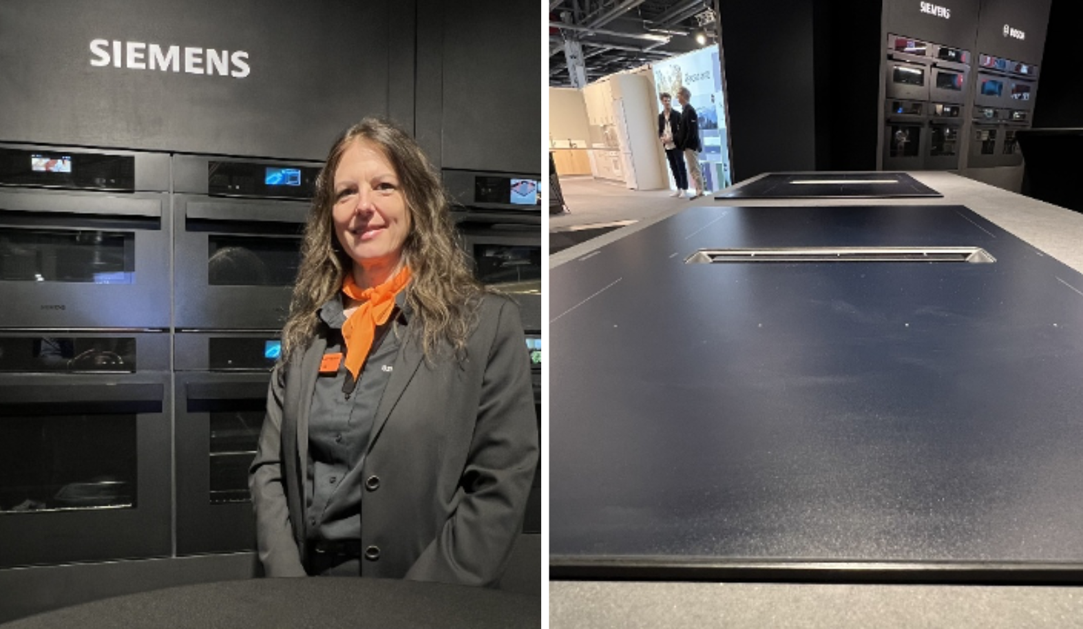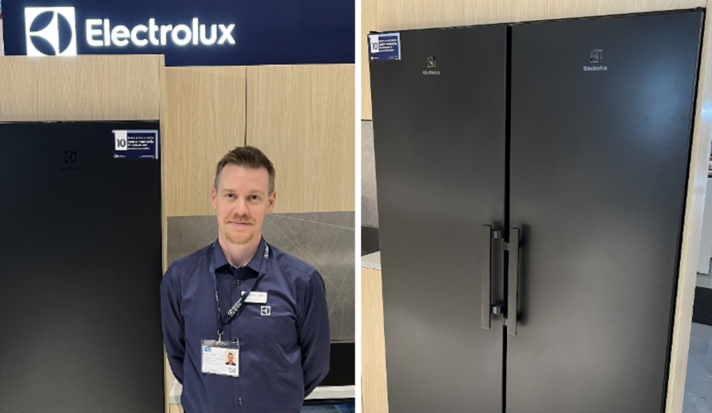 Även Oskar Arkstedt från Electrolux Centrala Bygg i den kombinerade Electrolux/AEG-montern visade upp den mattsvarta looken i de båda varumärkena AEG och Electrolux, vilket understryker att mattsvart nu etablerat sig som ett attraktivt och modernt val i kökets helhetsdesign.